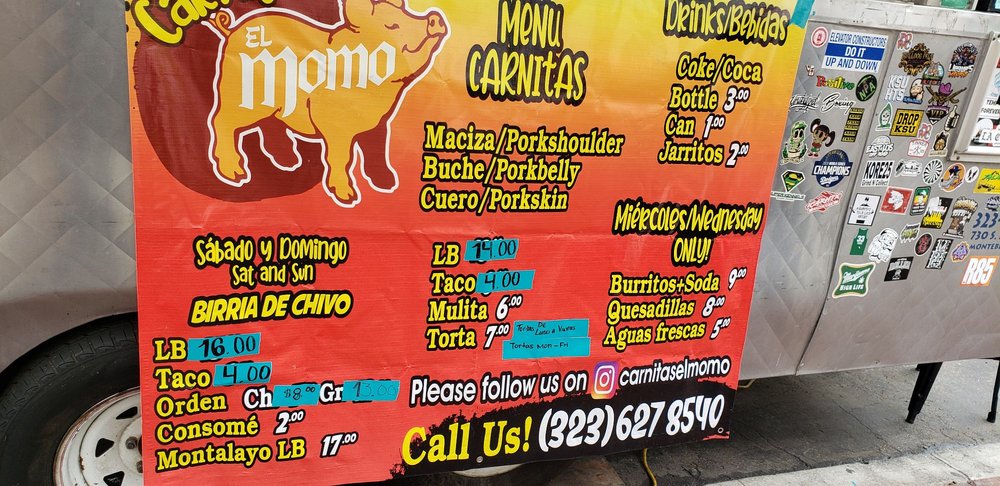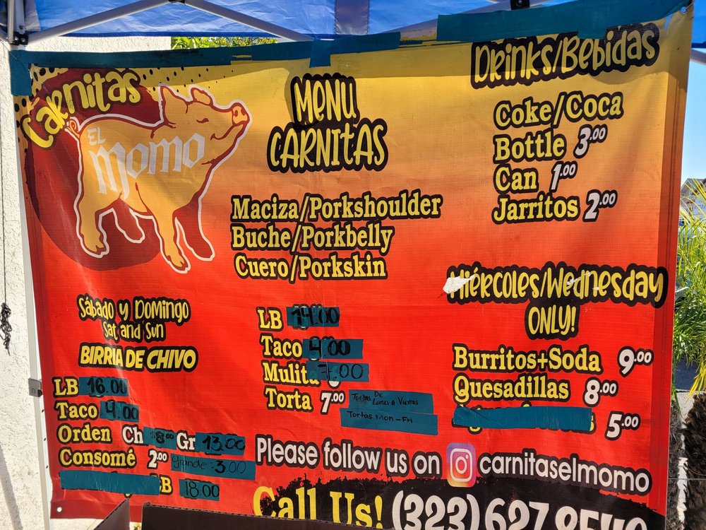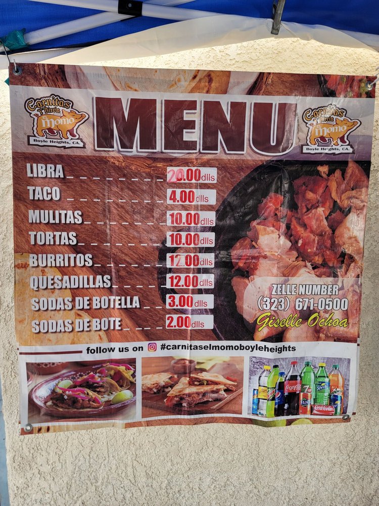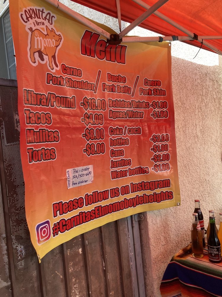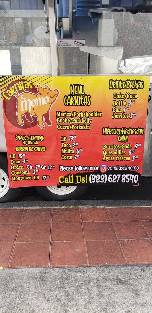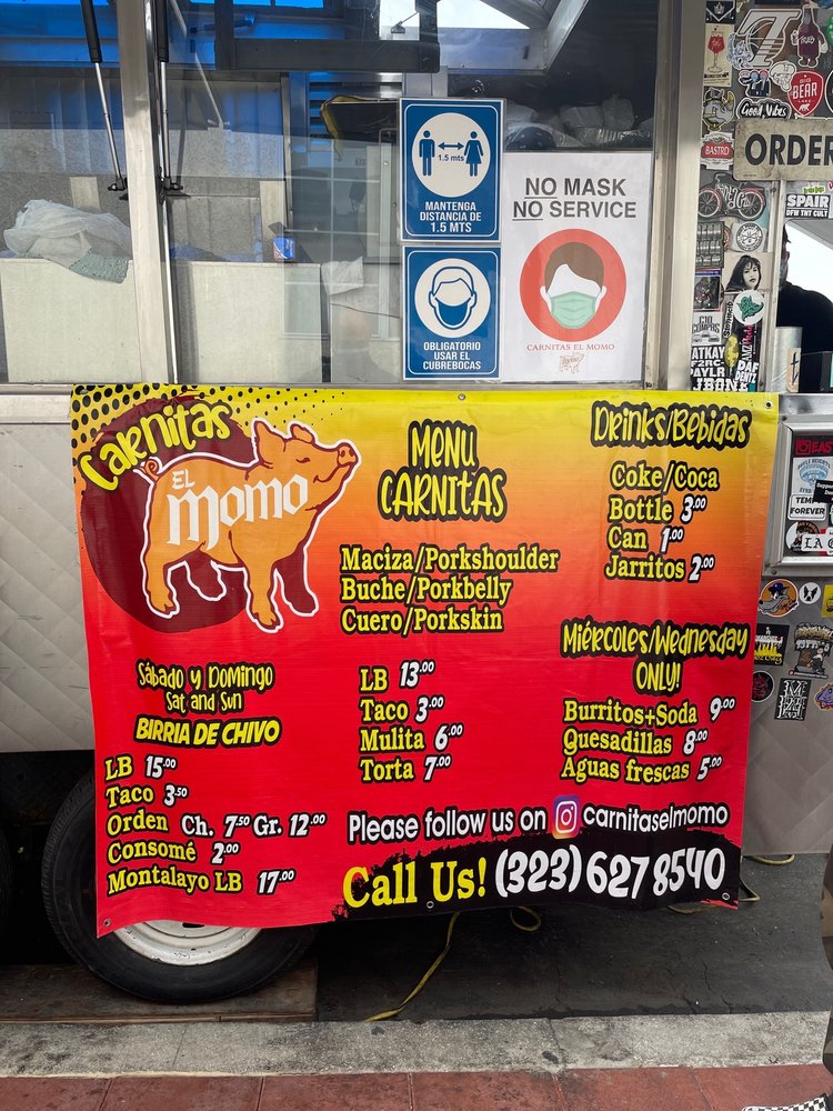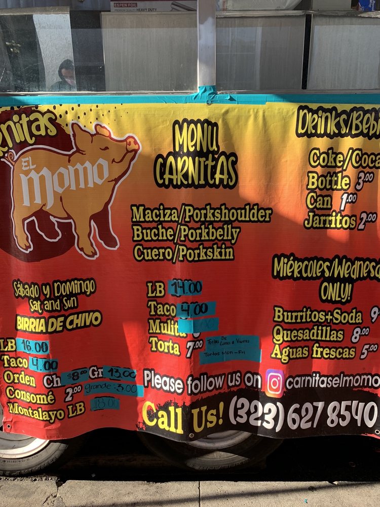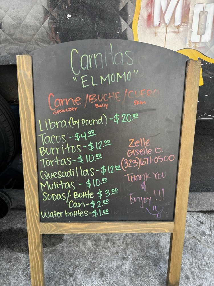 Carnitas El Momo is a popular taco spot located in Los Angeles, offering a variety of delicious options such as burritos, tacos, and tortas with fillings like asada, pollo, birria, and more. Customers rave about the flavorful carnitas, with one reviewer calling them the best in the state. The tacos are generously stuffed and served with a side of tasty salsa. The pork is cooked to perfection, although some find it slightly dry. The hot sauce is a standout, adding an extra kick to the dishes. Overall, Carnitas El Momo is praised for its quick service, friendly staff, and mouth-watering flavors. So, if you're in the mood for some authentic carnitas, this is definitely the spot to visit.